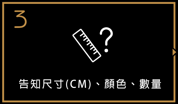 我們提供了非常完整的客製化服務,不限數量皆可訂做!但為了節省您寶貴的時間,請務必遵照流程,並提供確切資料,方便我們報價及出貨。商品計價方式與尺寸大小、圖形複雜程度、顏色多寡、數量多寡有關,請務必提供詳細的訂做內容,方可正確報價。